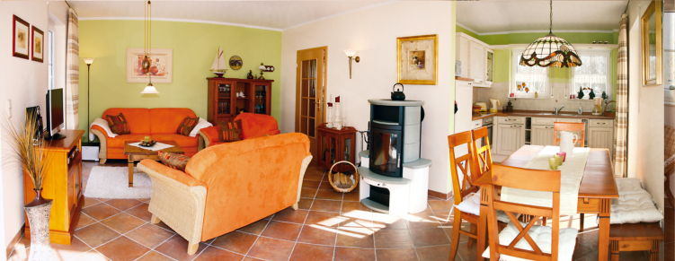 Genießen Sie auf 90 Quadratmetern Geräumigkeit, Funktionalität und ein Wohlfühlerlebnis, das Seinesgleichen sucht. Ganz gleich zu welcher Jahreszeit Sie anreisen. Ein moderner Kamin sorgt für entsprechende Gemütlichkeit im Winter. Große lichtdurchlässige Panoramafenster mit Rolläden sorgen im Sommer für maximalen Wohlfühlfaktor bei angenehm kühler Raumtemperatur. Die komfortable Terrasse mit liebevoll gepflegtem Garten wird Ihren besonderen Wohnansprüchen gerecht werden.